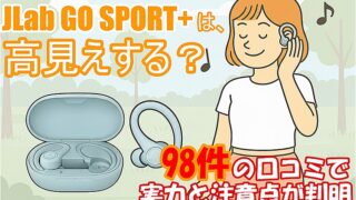 JLab GO SPORT+の口コミ98件を徹底分析。見た目の質感やジムでの使い勝手はどう評価されているのか、耳につけたときのフィット感や持ち運びやすさは実際どうなのか、購入者の声からわかる良い点・気になる点をわかりやすく整理しました。