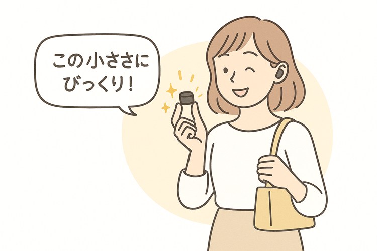 1つは、イヤホン本体が圧倒的に小さいこと。耳のくぼみにすっぽりと収まってくれるので、耳が小さい方でも安定しやすいんです。片耳わずか4.2gという軽さもあって、「着けているのを忘れるくらい快適」という声が本当に多かったですね。