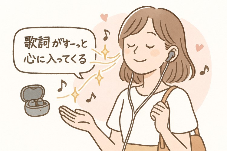 他メーカーのイヤホンにありがちな、低音の迫力でグイグイ押してくる感じとは少し違います。このイヤホンが何より優先しているのは、ボーカルの「声」なんです。だから、音楽を聴いた時に、歌詞の一つひとつがとても聴き取りやすいんですよ。