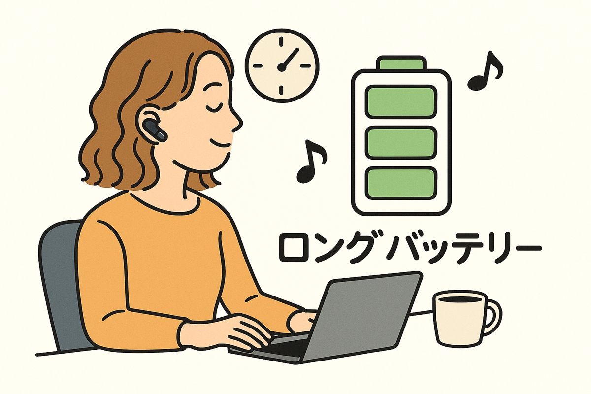 単体で9時間もつ、というのは「朝、家を出てから、夜帰ってくるまで、一度もケースに戻さなくても大丈夫」ということです。例えば、デスクワーク中にずっと着けっぱなしでも、帰りの電車でバッテリー切れ、なんて悲劇は起きません。このスタミナは、日常の安心感に直結する、とても大切な性能だと思いますよ。 |