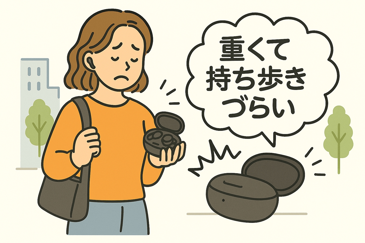 その理由は、もうはっきりしていますよね。口コミでも多くの人が指摘していた、充電ケースの「大きさ」です。