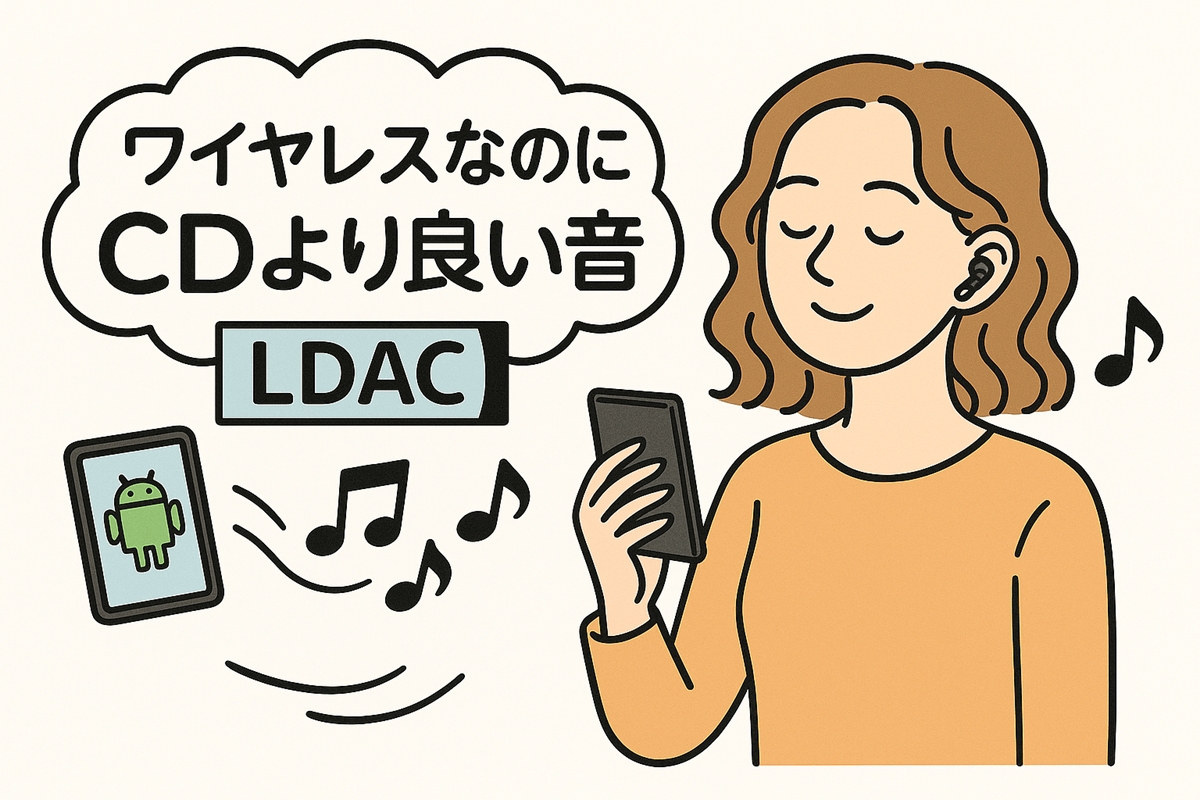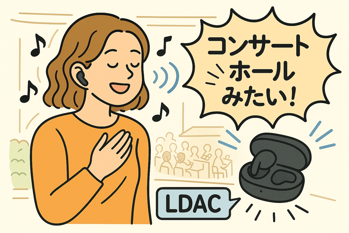 この価格帯ではちょっと信じられない、というのが正直な感想なんですけど、このイヤホンが対応している「LDAC(エルダック)」という規格が、まず最初の注目ポイントです。