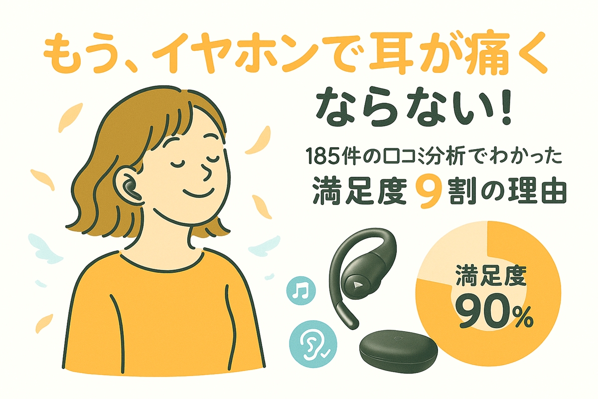 分析した口コミの実に92%という、ほとんどの人が「満足」と答えていました。その理由は非常にシンプルで、多くの人が「カナル型特有の悩みから解放された」と感じているからなんです。