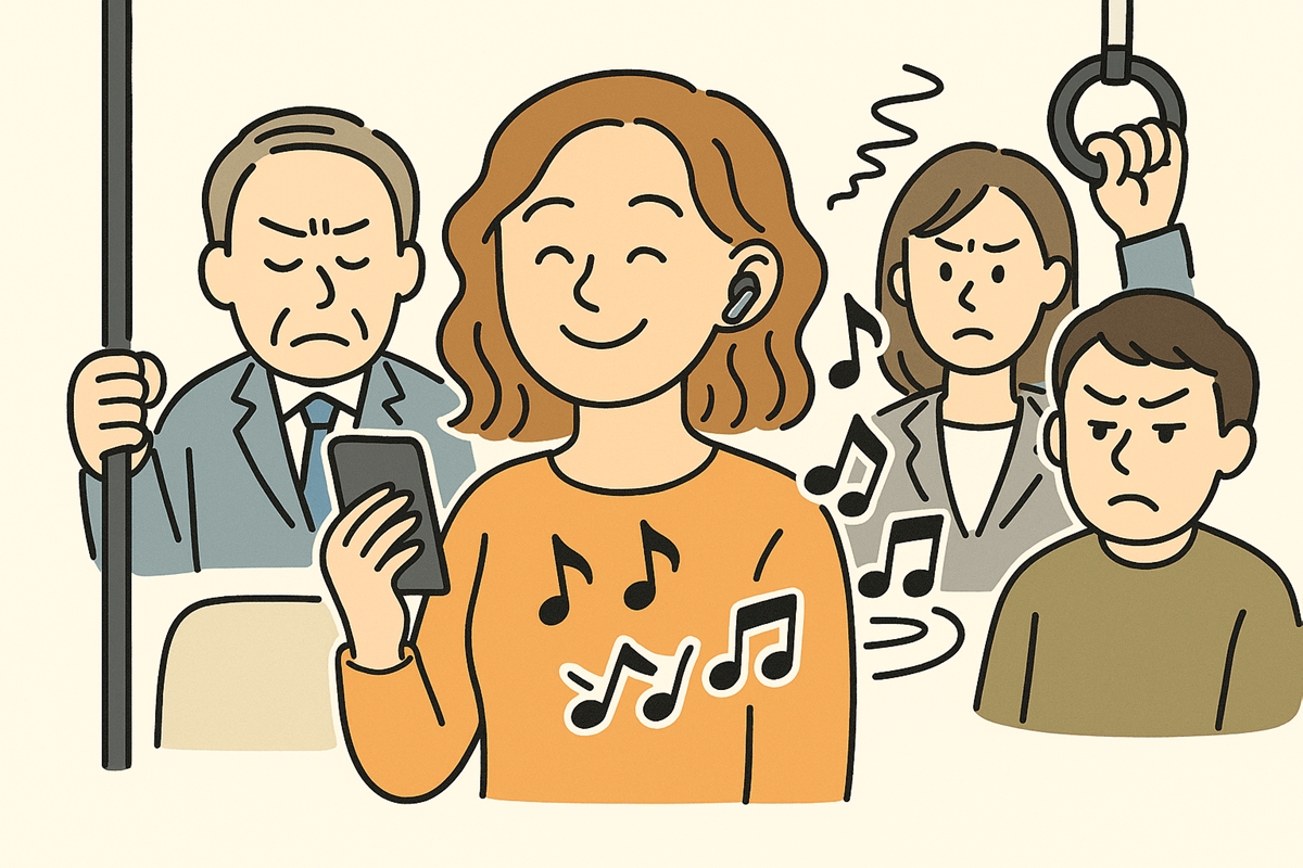また、音漏れとは逆に、電車の中のような騒がしい場所では、今度は周りの音で音楽がほとんど聞こえなくなってしまいます。